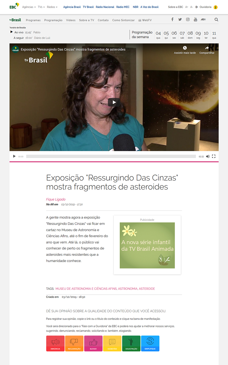 TV Brasil | MAST apresenta exposição 'Ressurgindo das Cinzas'