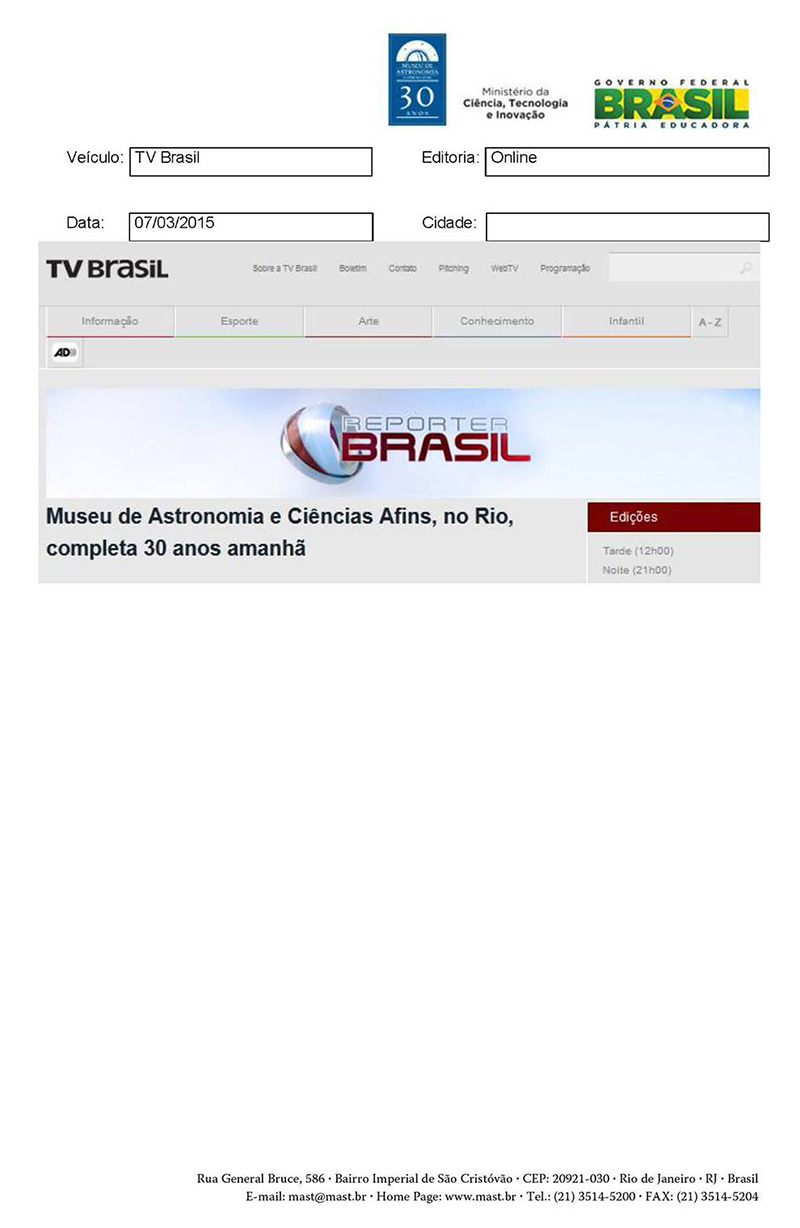 TV Brasil | Museu de Astronomia e Ciências Afins, no Rio, completa 30 anos amanhã