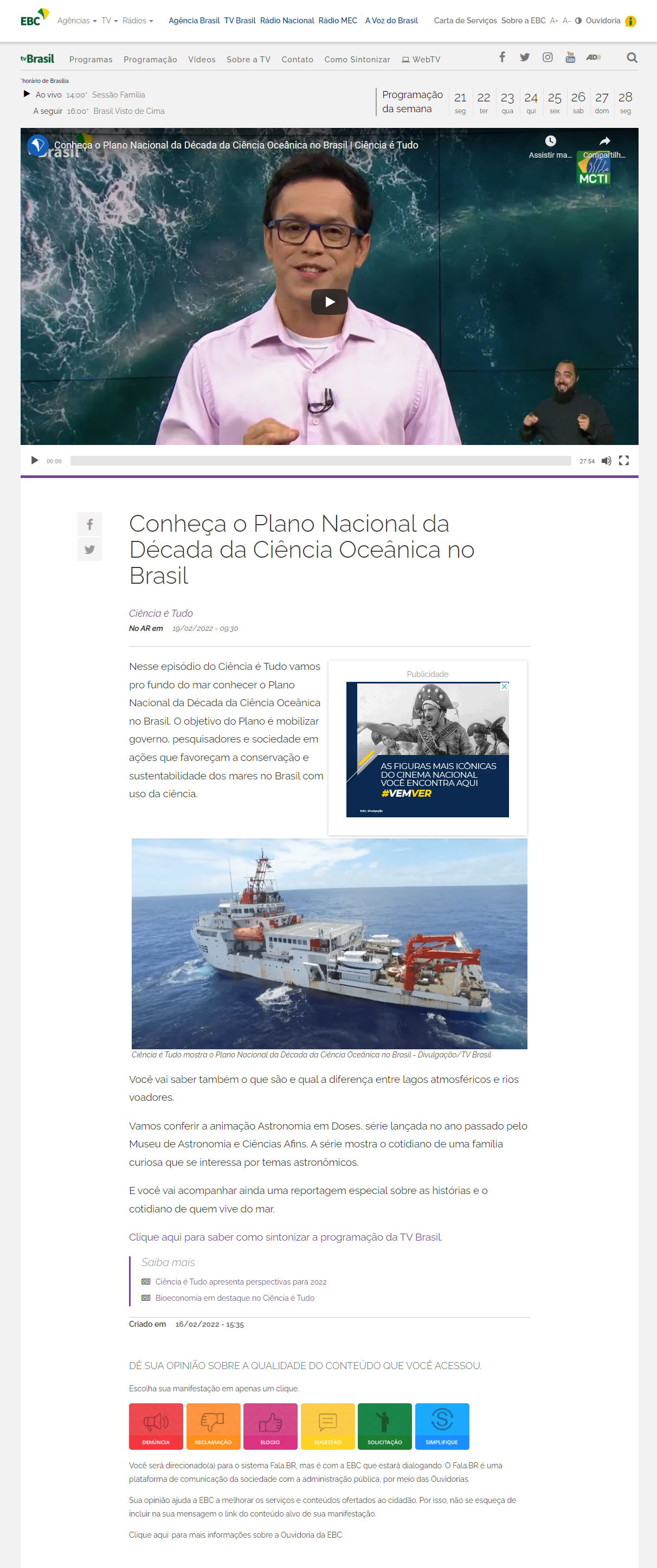 TV Brasil / Programa 'Ciência É Tudo' - MAST na reportagem sobre a série de vídeos 'Astronomia em Doses'