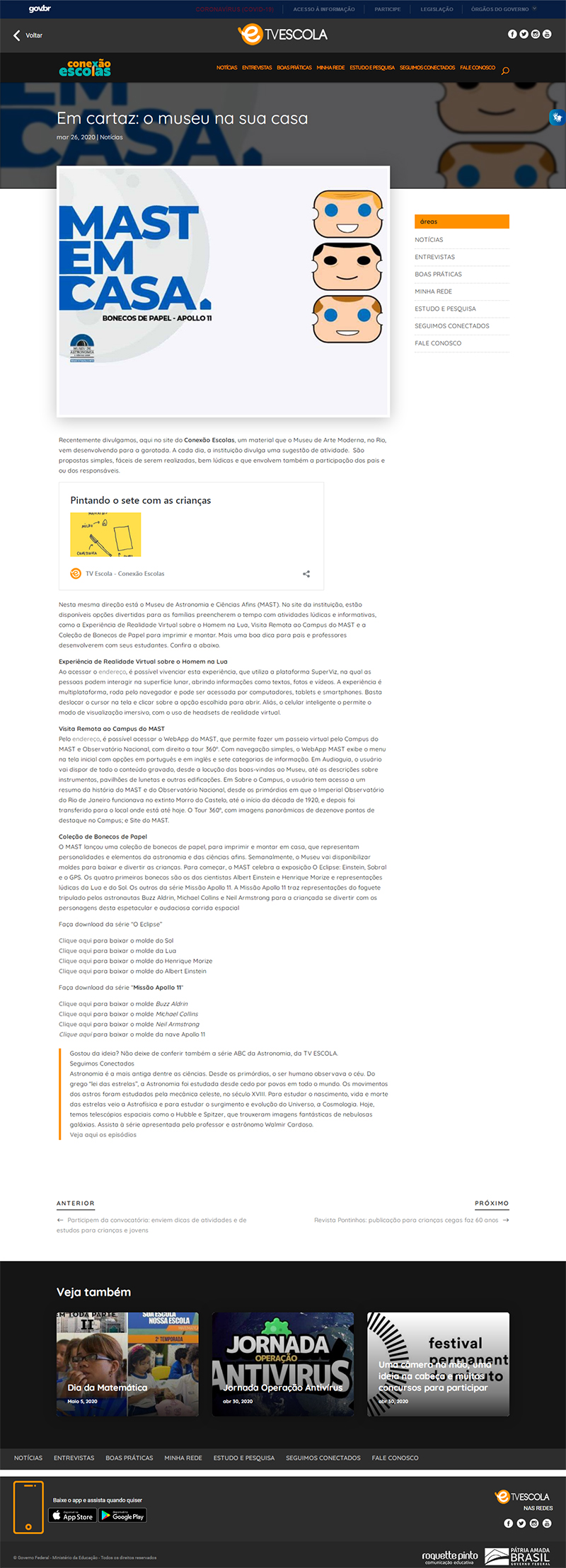 TV Escola - Conexão Escolas | MAST disponibiliza visita virtual e moldes de brinquedos de papel