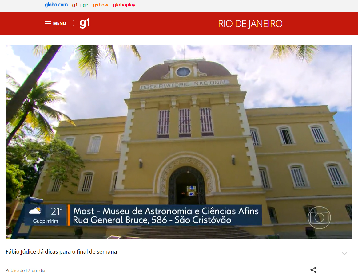 TV Globo / RJTV 1 / Dicas Para o Final de Semana - MAST na 'Primavera dos Museus' / 'As Três Marias'