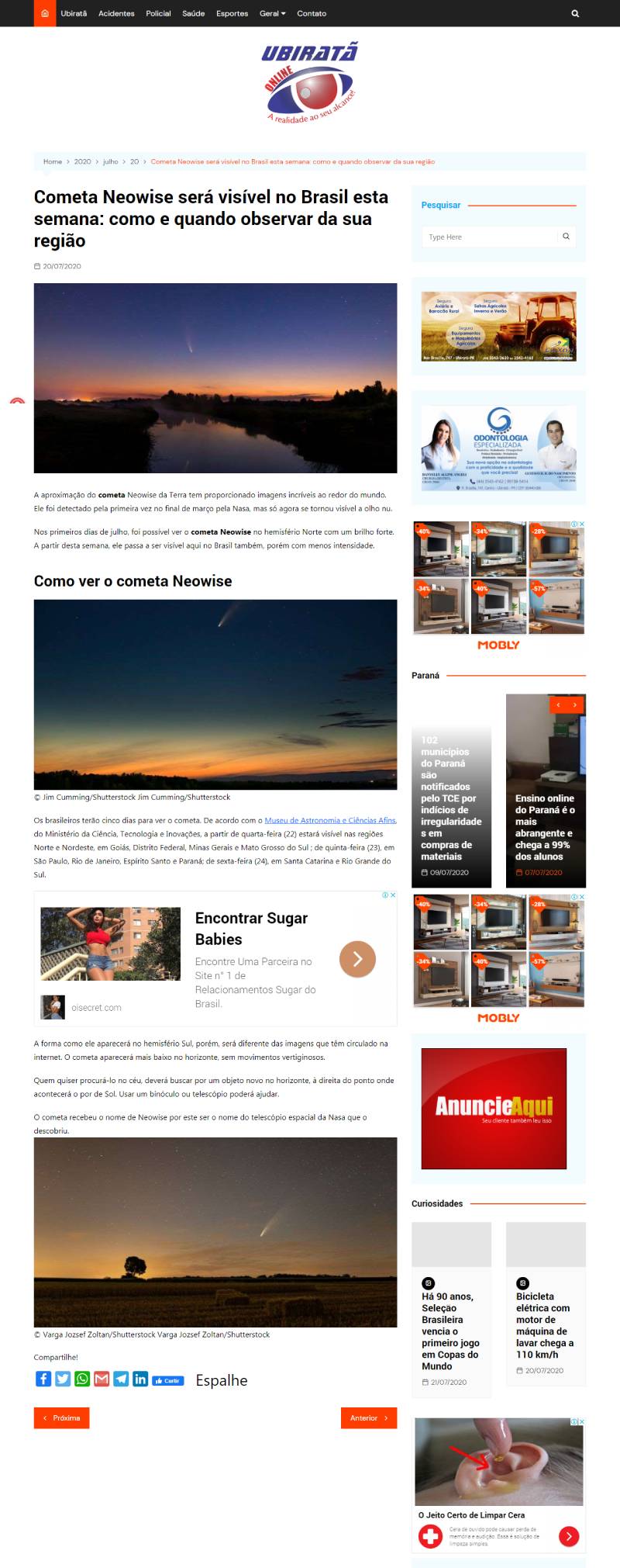 Ubiratã On-Line (Ubiratã – PR) | MAST na reportagem ‘Cometa Neowise será visível esta semana: como e quando observar da sua região’