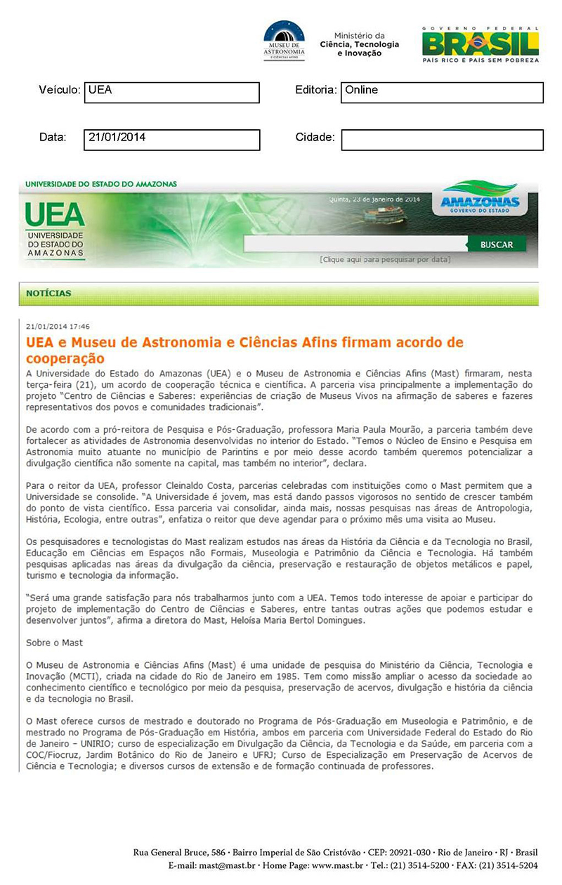 UEA | UEA e Museu de Astronomia e Ciências Afins firmam acordo de cooperação