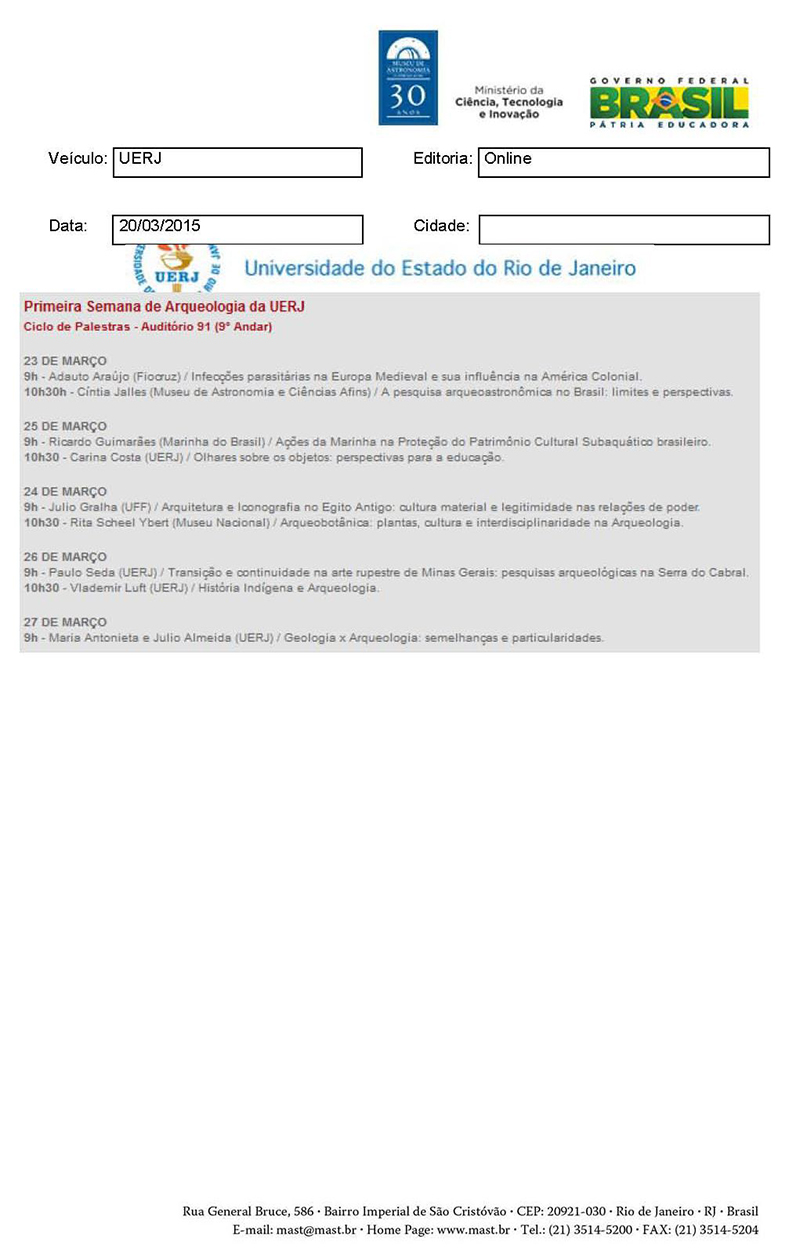 UERJ | Primeira Semana de Arqueologia da UFRJ