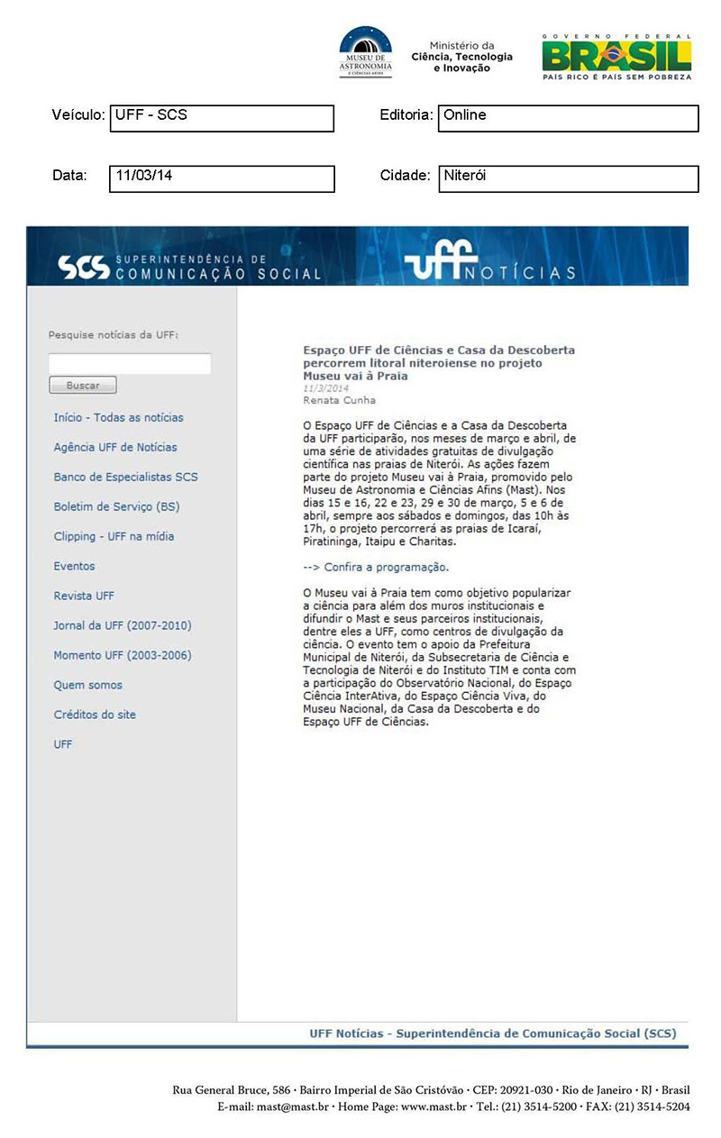 UFF - SCS | Espaço UFF de Ciências e Casa da Descoberta percorrem litoral niteroiense no projeto Museu vai à Praia