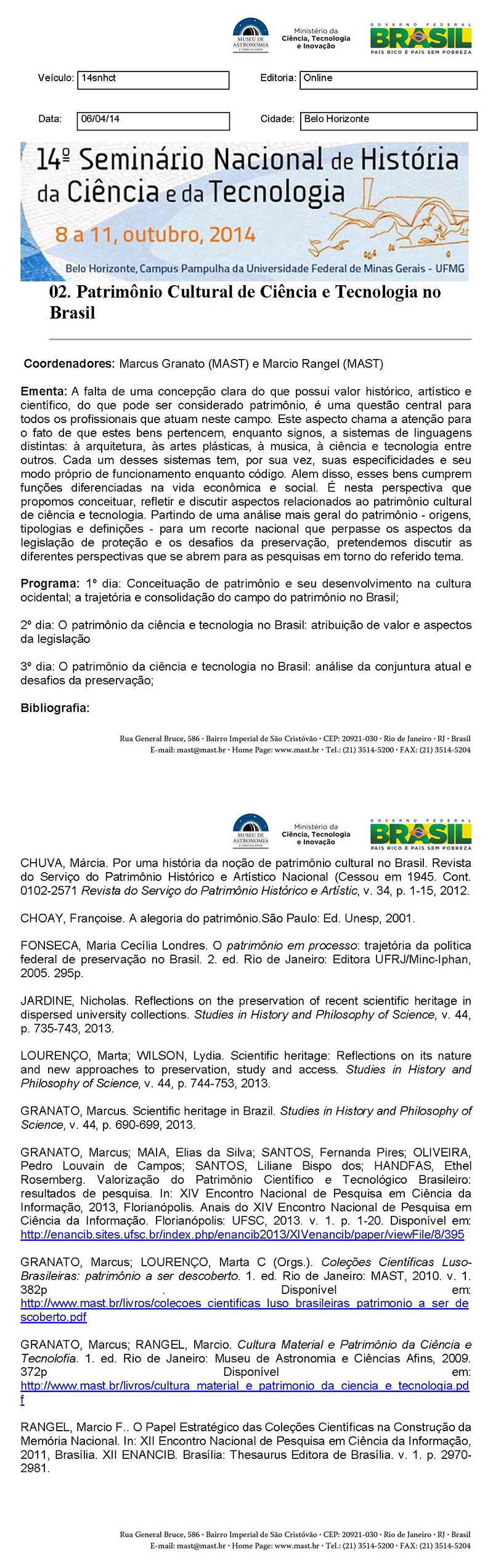UFMG | 14º Seminário Nacional de História da Ciência e da Tecnologia