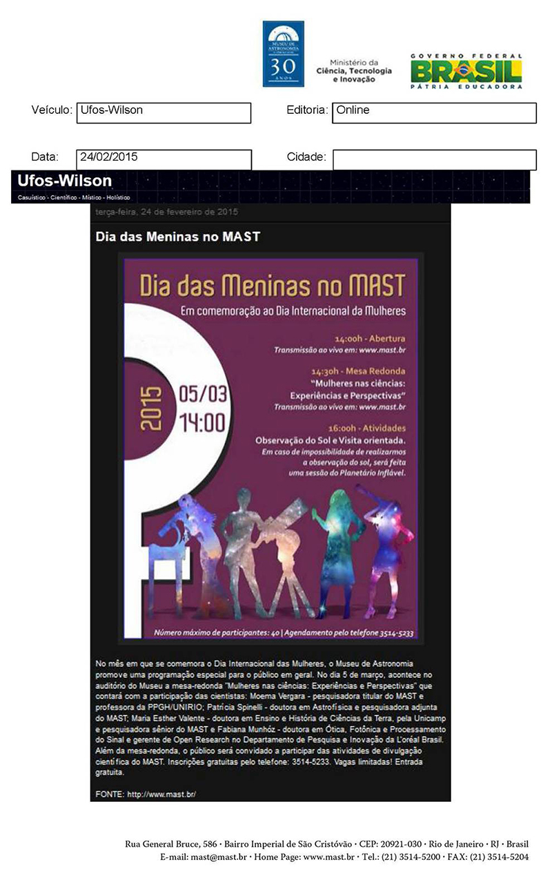 Ufos-Wilson | Dia das Meninas no MAST