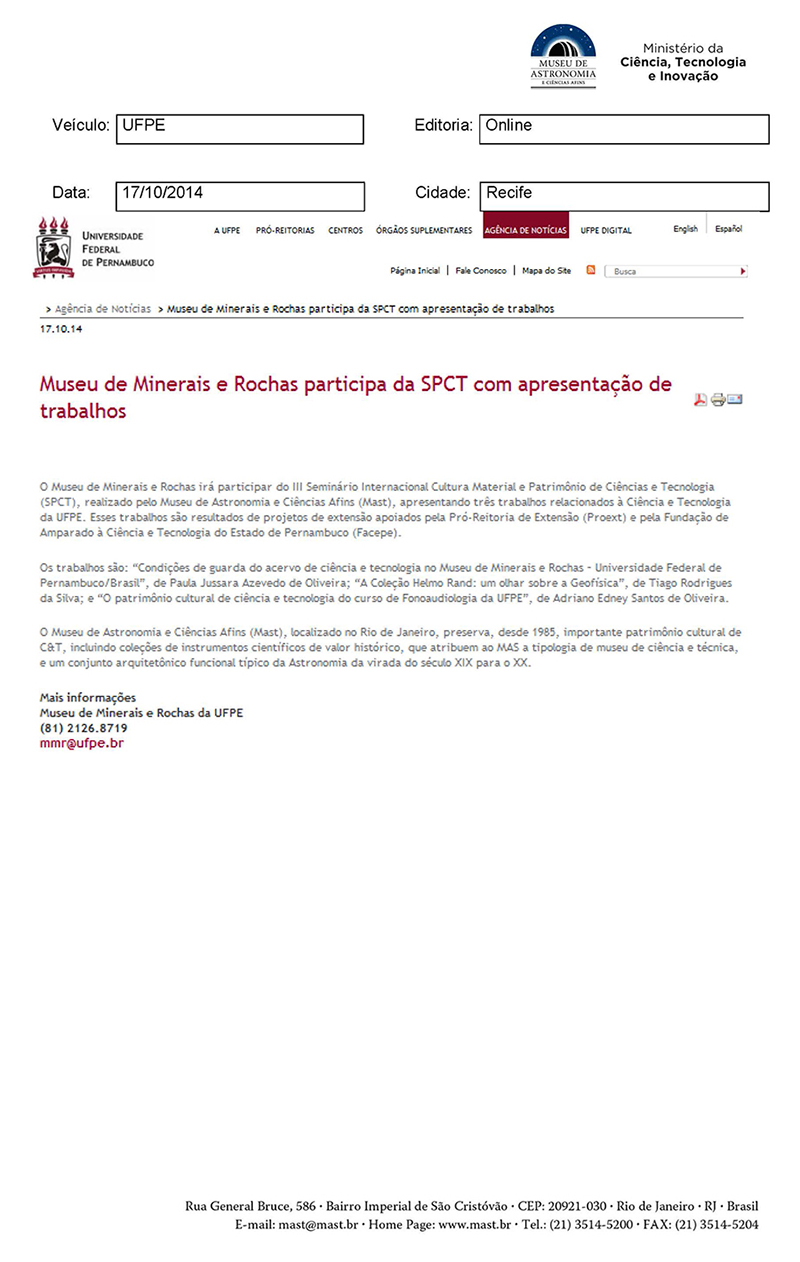 UFPE | Museu de Minerais e Rochas participa da SPCT com apresentação de trabalhos