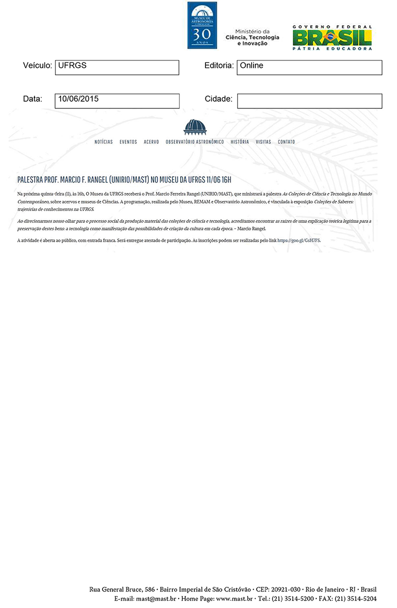 UFRGS | Palestra prof. Marcio F. Rangel (UNIRIO/MAST) no Museu da UFRGS