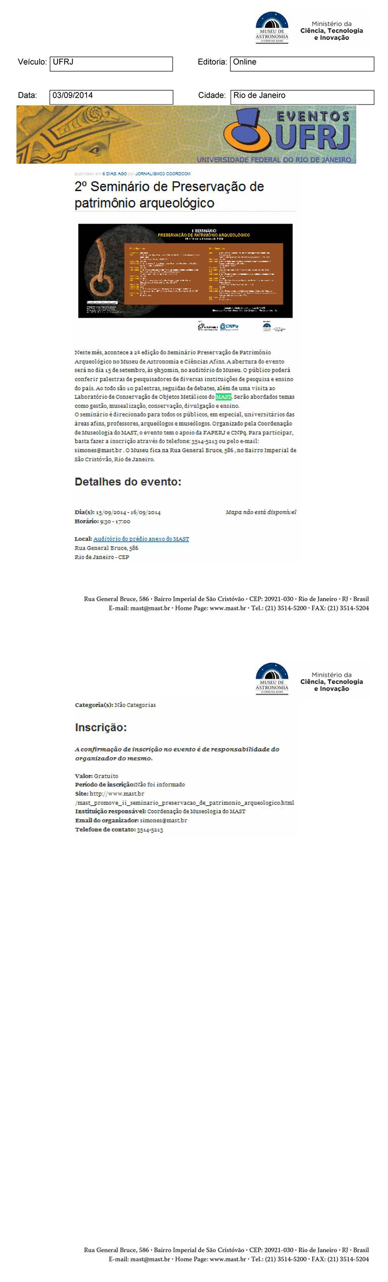 UFRJ | 2º Seminário de Preservação de Patrimônio Arqueológico