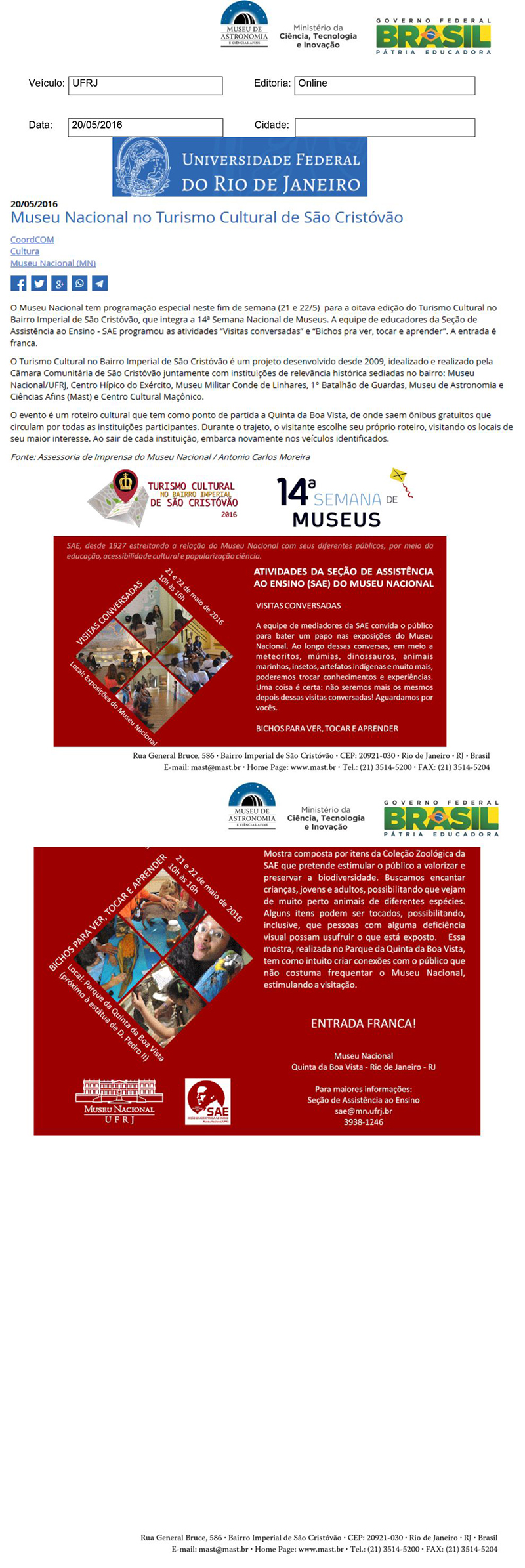 UFRJ | Museu Nacional no Turismo Cultural de São Cristóvão