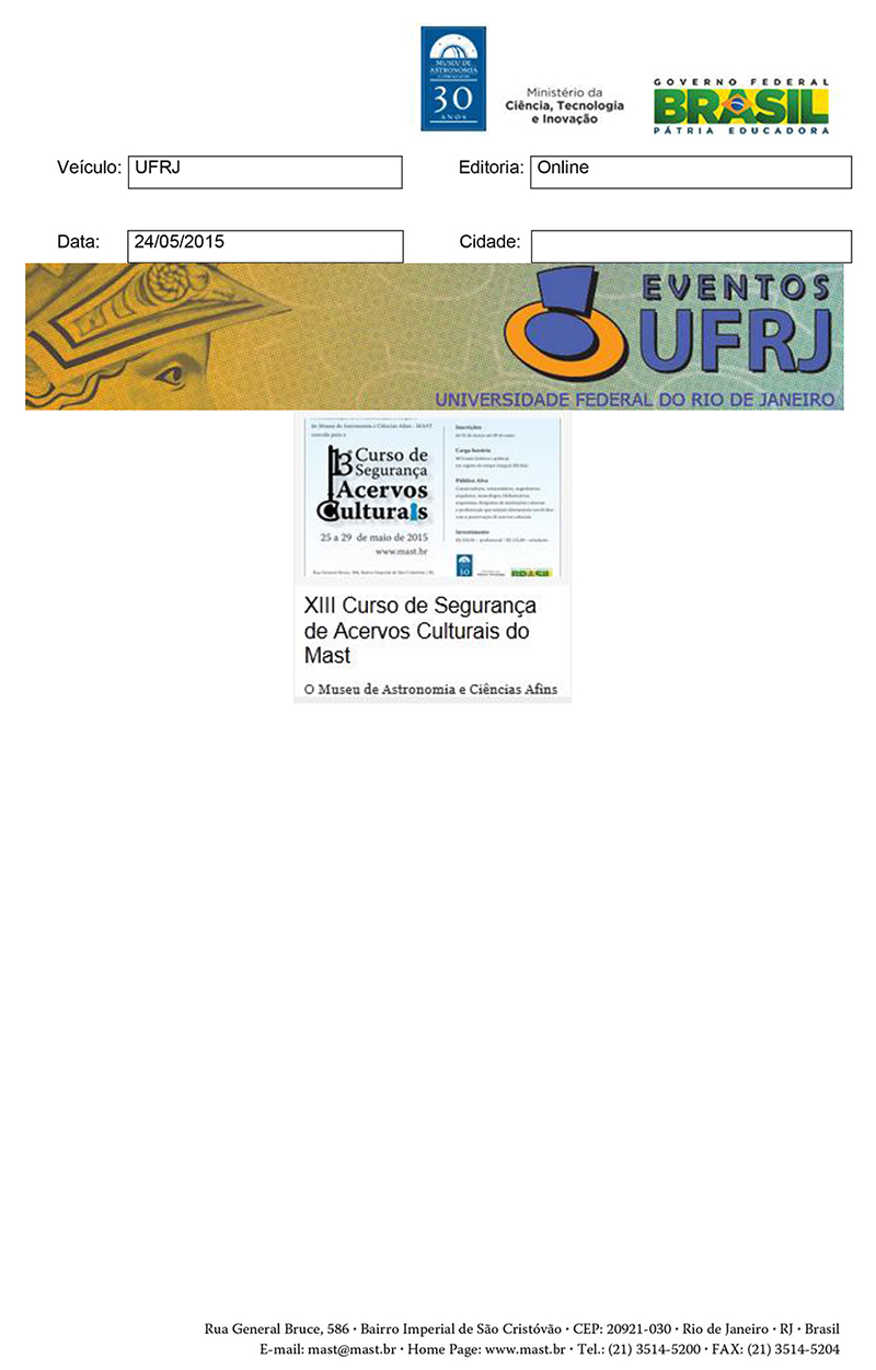 UFRJ | XIII Curso de Segurança de Acervos Culturais do MAST