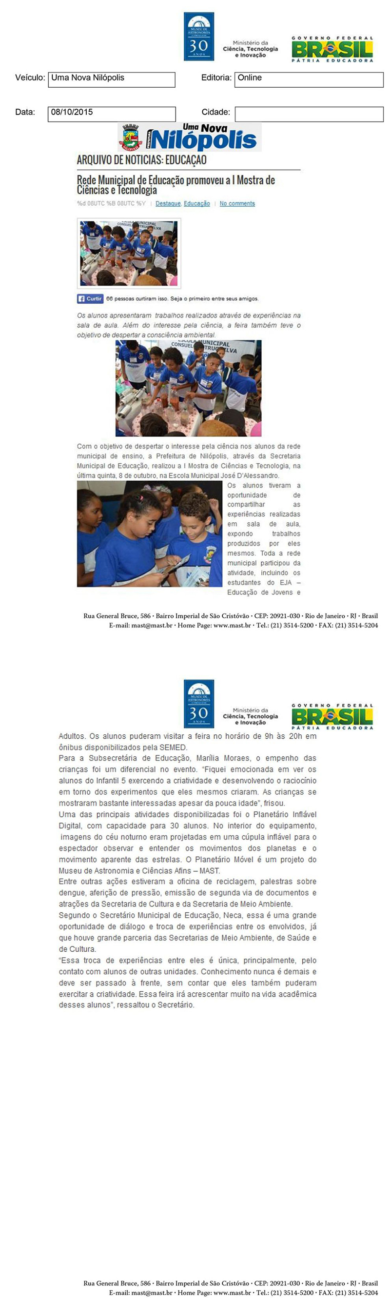 Uma Nova Nilópolis | Rede Municipal de Educação promoveu a I Mostra de Ciências e Tecnologia