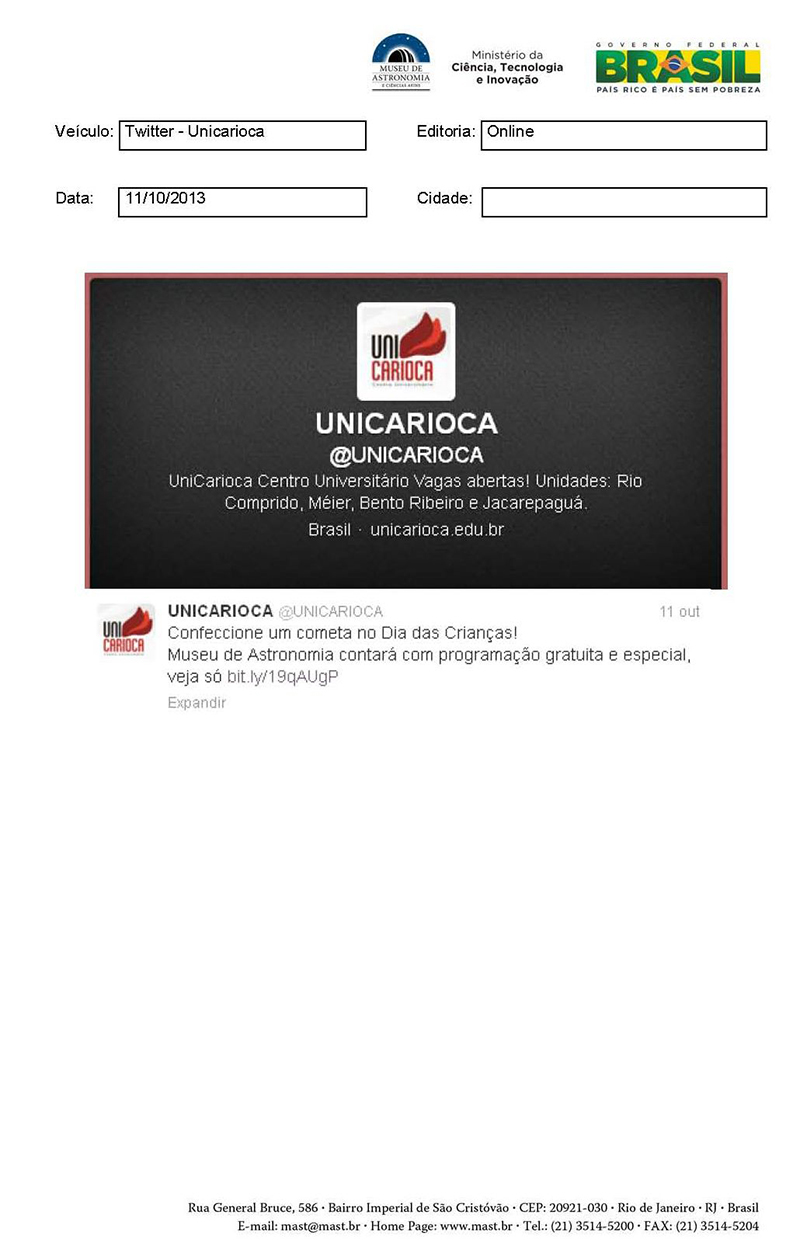 Unicarioca - Twitter | Confeccione um Cometa no Dia das Crianças