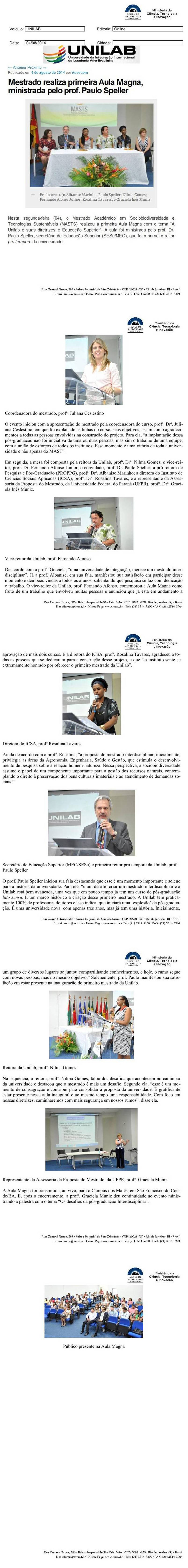 UNILAB | Mestrado realiza primeira Aula Magna, ministrada pelo prof. Paulo Speller