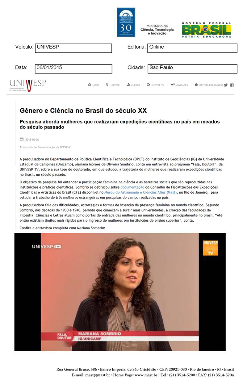 UNIVESP | Gênero e Ciência no Brasil do século XX