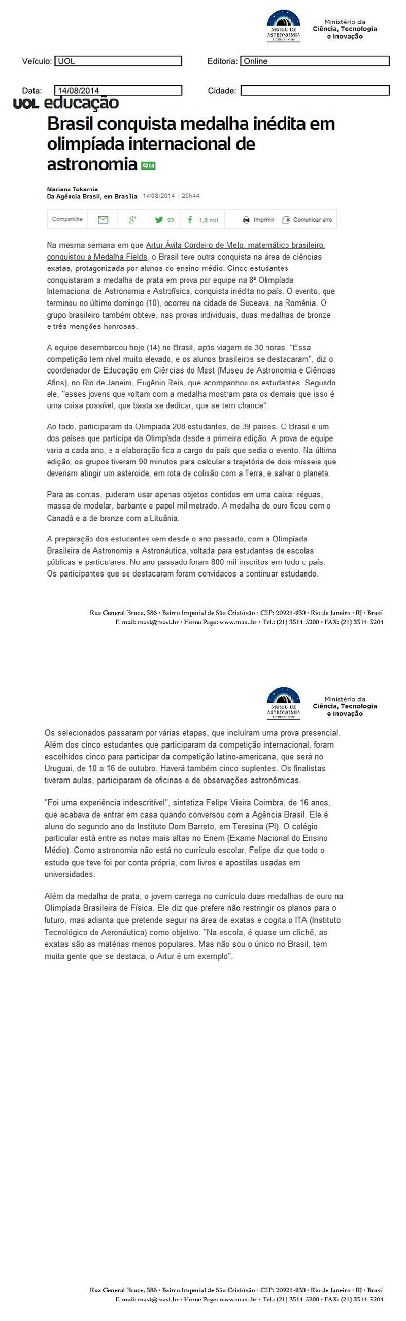 UOL | Brasil conquista medalha inédita em olimpíada internacional de astronomia
