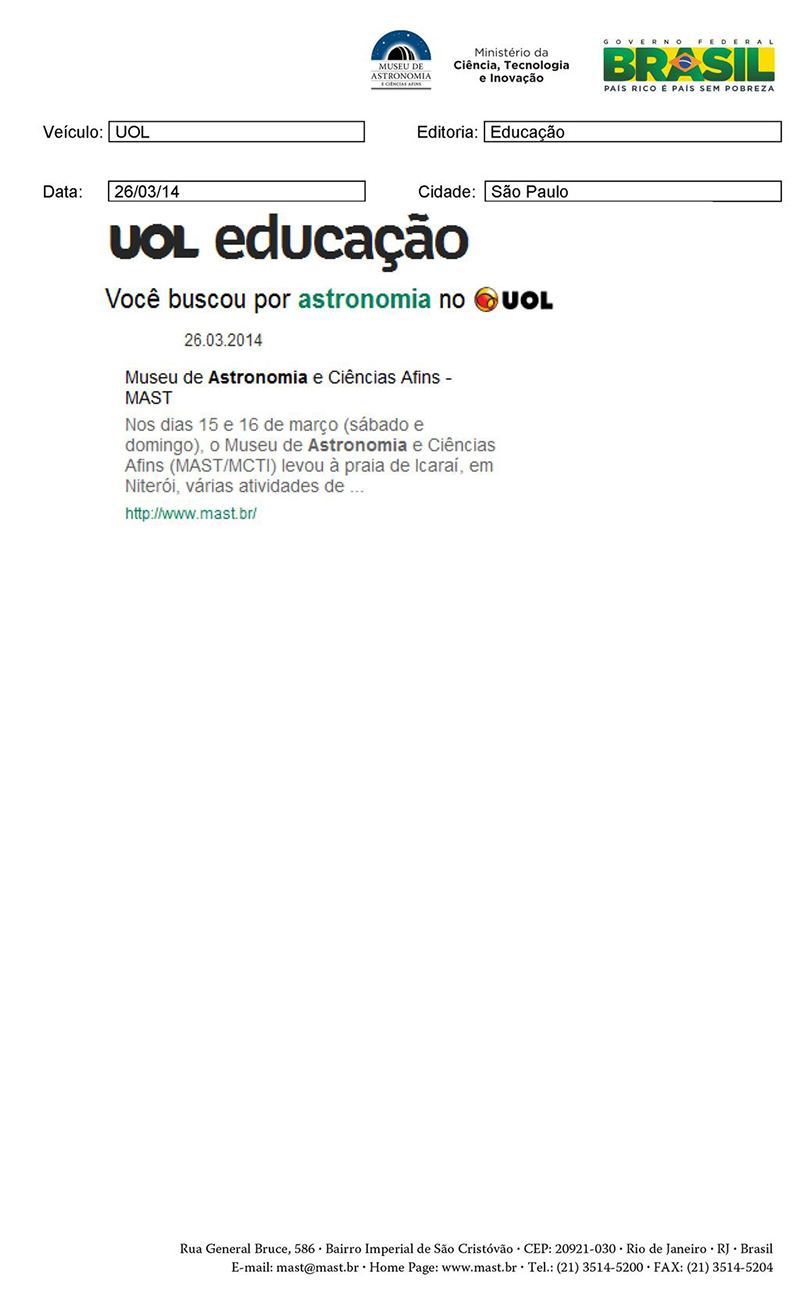 UOL | Museu de Astronomia e Ciências Afins - MAST