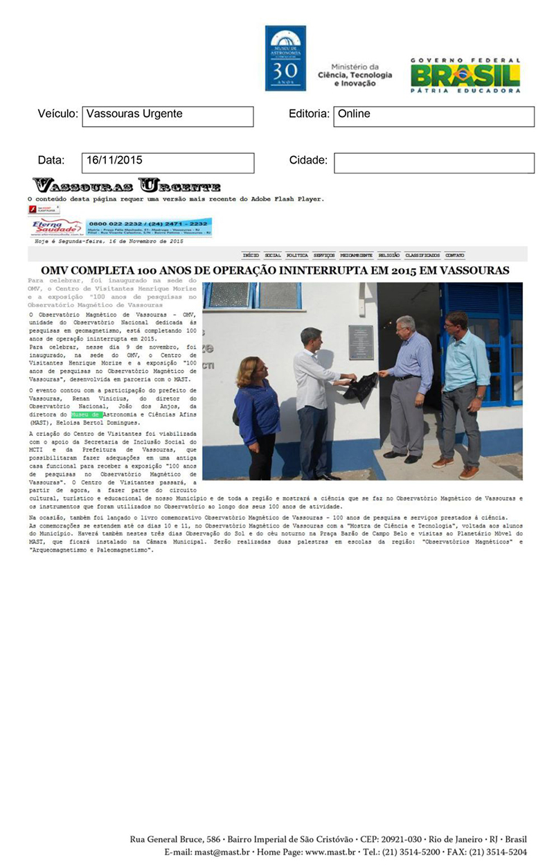 Vassouras Urgente | OMV completa 100 anos de operação ininterrúpta em 2015 em Vassouras