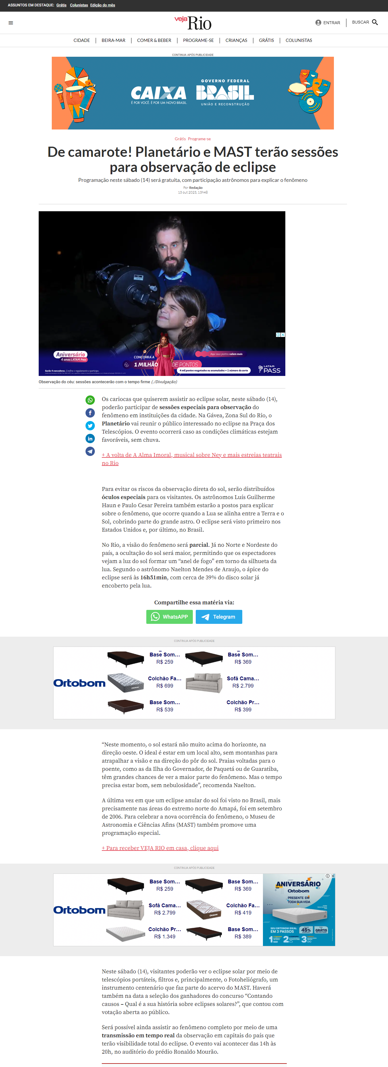 Veja Rio - De camarote! Planetário e MAST terão sessões para observação de eclipse