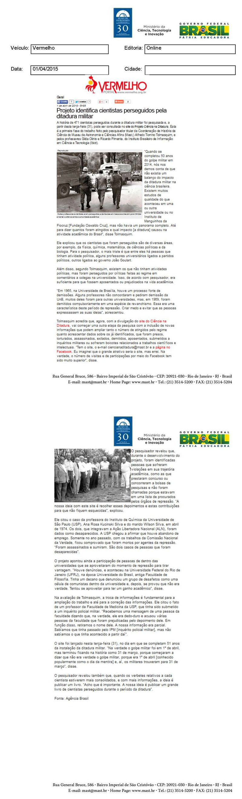 Vermelho Portal | Projeto identifica cientistas perseguidos pela ditadura militar