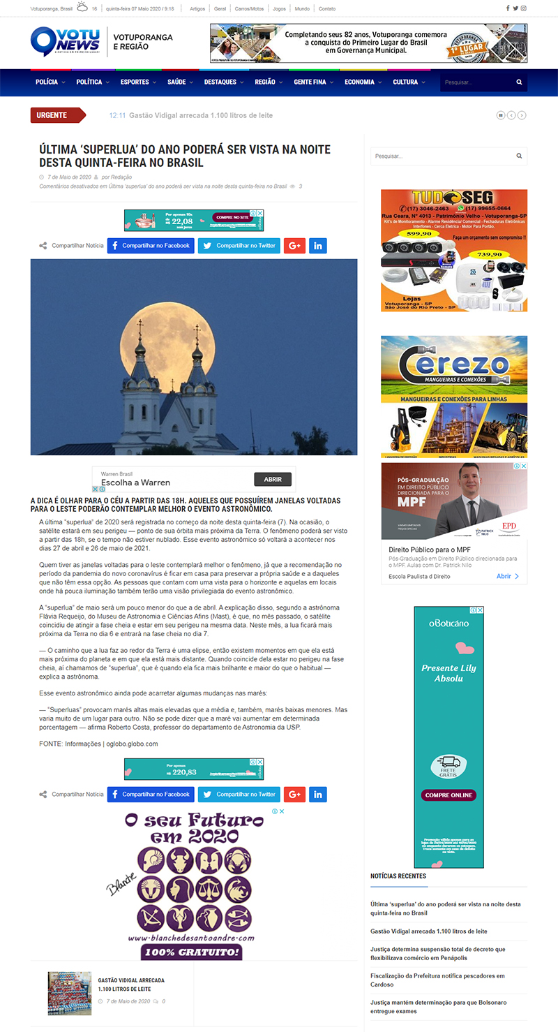 VotuNews (Votuporanga - SP) | MAST na reportagem sobre a última Superlua de 2020