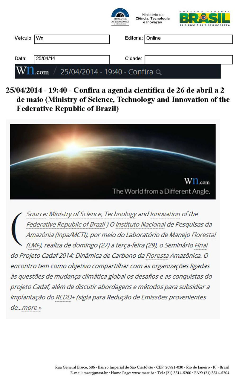Wn.com | Confira a agenda científica de 26 de abril a 2 de maio