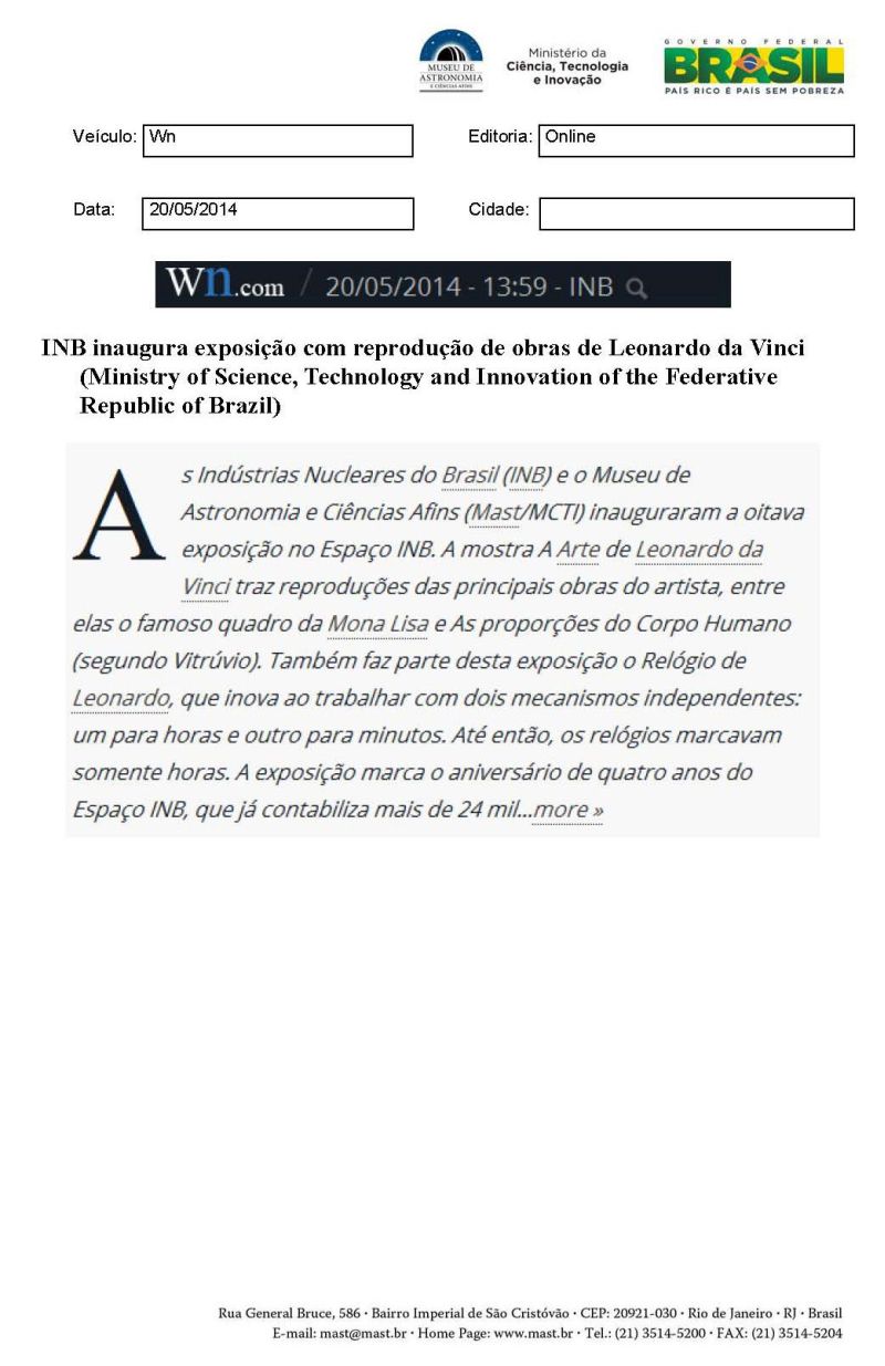 Wn.com | INB inaugura exposição com reprodução de obras de Leonardo da Vinci