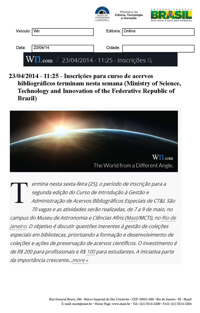 Wn.com | Inscrições para curso de acervos bibliográficos terminam nesta semana