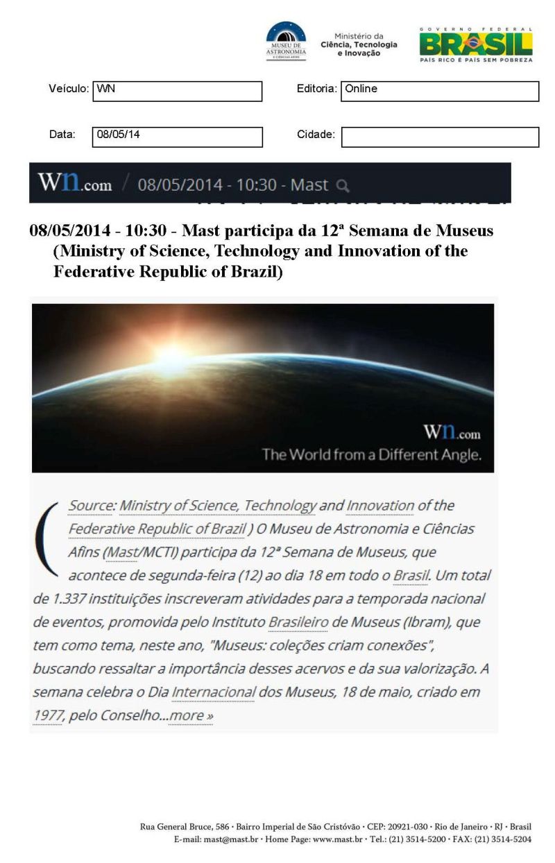 Wn.com | MAST participa da 12ª Semana de Museus
