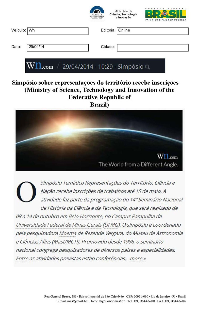 Wn.com | Simpósio sobre representações do território recebe inscrições