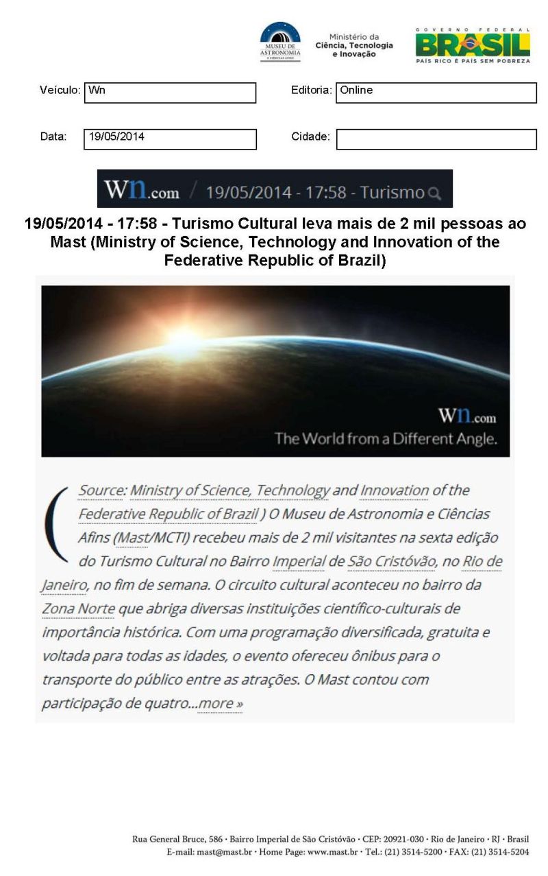 Wn.com | Turismo Cultural leva mais de 2 mil pessoas ao MAST