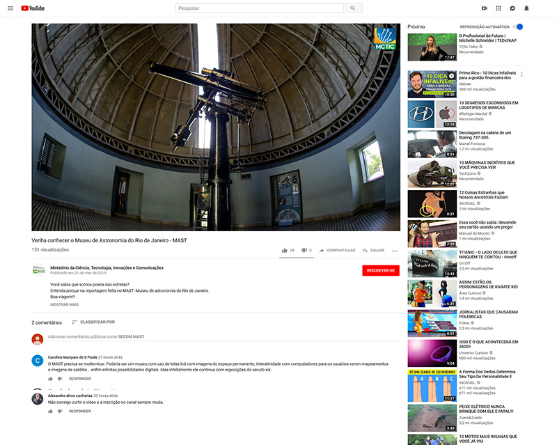 Youtube MCTIC | Venha Conhecer o MAST