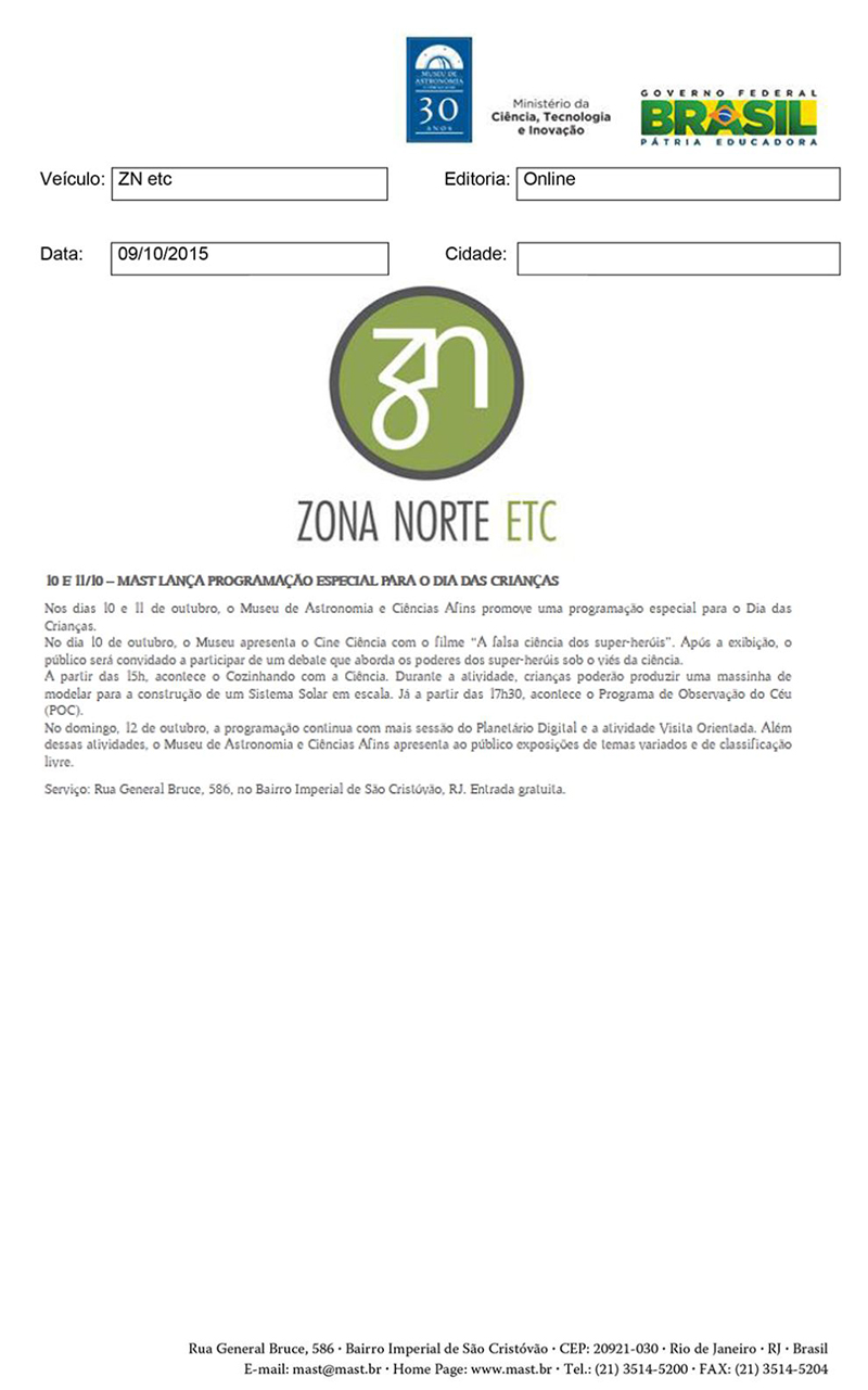 ZN Etc | MAST lança programação especial para o Dia das Crianças