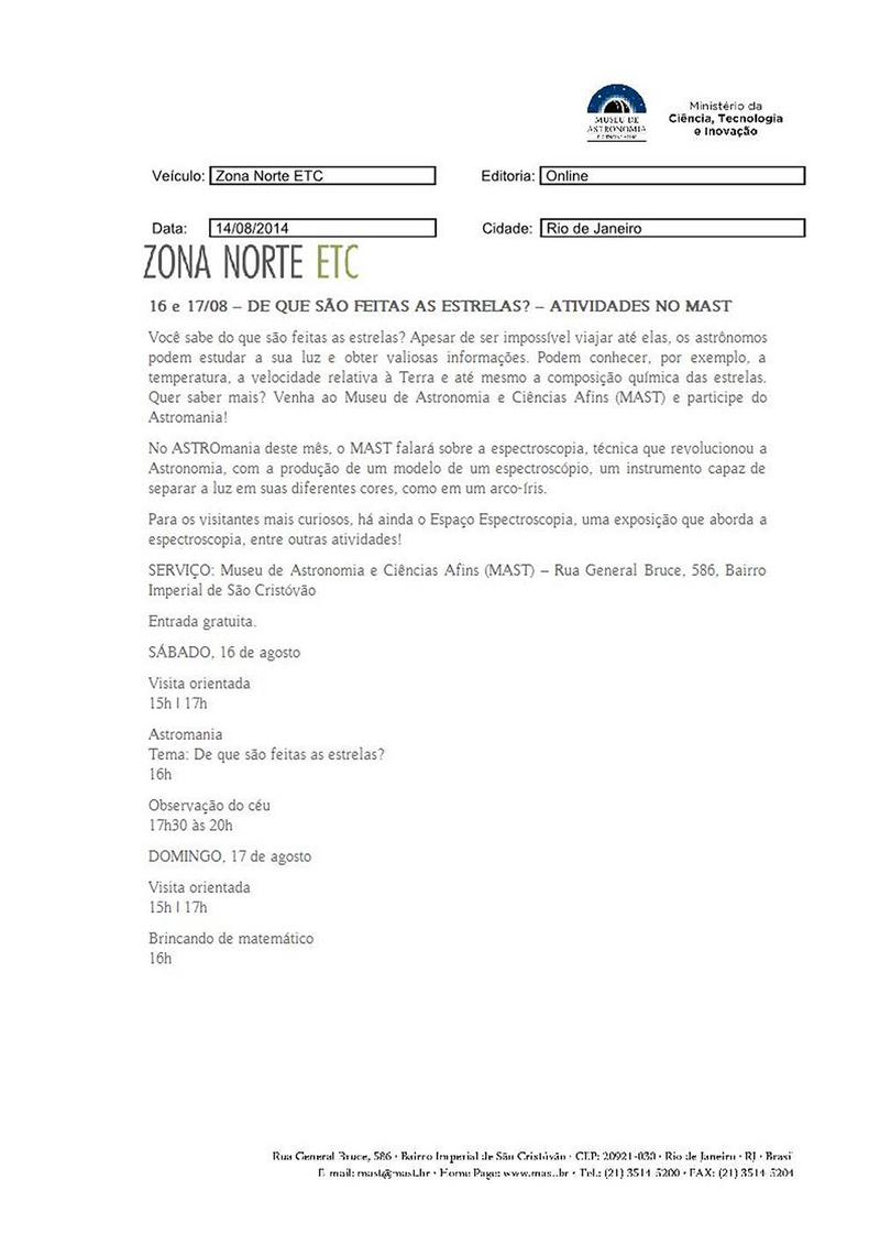 Zona Norte - ETC | Quer saber de que são feitas as estrelas? - Atividade no MAST