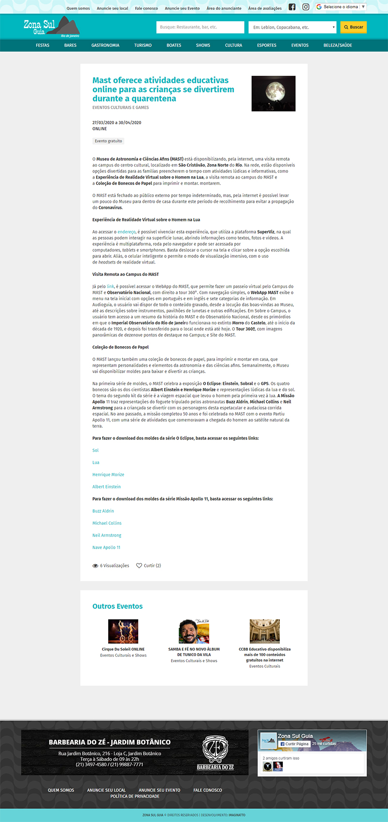 Zona Sul Guia | MAST disponibiliza visita virtual