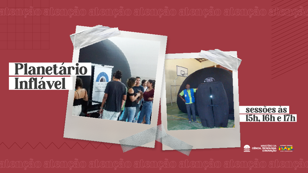 Serão três sessões do planetário inflável: às 15h, 16h e 17h, com distribuição de 25 senhas 30 minutos antes do evento. Na ocasião, imagens projetadas vão simular o céu noturno para explicar temas como os movimentos dos planetas e o deslocamento aparente das estrelas.