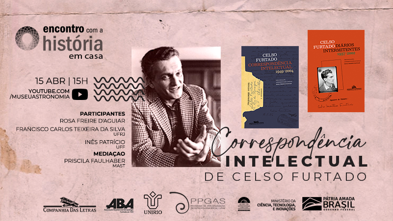 Para contar algumas reflexões do economista e levar alguns de seus pensamentos às novas gerações, o Museu de Astronomia e Ciências Afins (MAST) abre a série Encontros com a História em Casa de 2021 com a live Correspondência Intelectual de Celso Furtado. O evento acontece no dia 15 de abril e conta com a participação especial da jornalista e premiada tradutora Rosa Freire D´Aguiar, viúva de Celso Furtado, responsável pela organização dos livros Diários Intermitentes de Celso Furtado - 1937-2002 e Celso Furtado - Correspondência Intelectual 1949-2004, este último, lançado em abril pela editora Companhia das Letras, apresentando a troca de 300 cartas entre o intelectual e diversos políticos, professores e economistas contemporâneos que foram observadores da história da segunda metade do século XX.