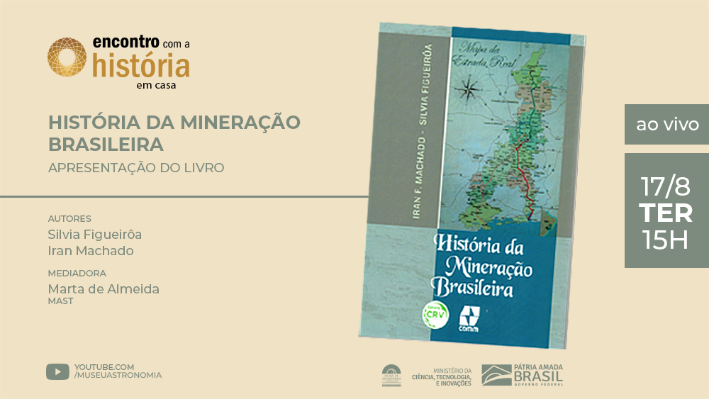 Com mediação da Dra. Marta de Almeida, historiadora e pesquisadora da Coordenação de Pesquisa e Arquivo (COPEA) do MAST, a iniciativa terá as presenças dos professores Silvia Figueirôa, Geóloga, Mestre e Doutora em História Social, e Dr. Iran Ferreira Machado, Geólogo PhD, aposentado do Instituto de Geociências da Unicamp, que são os autores do livro História da Mineração Brasileira. Eles vão contar sobre as suas trajetórias acadêmicas e como enfrentaram o desafio de consolidar no livro os temas e reflexões que interessam, não somente ao campo da história da ciência e da tecnologia, mas também à história em geral.
