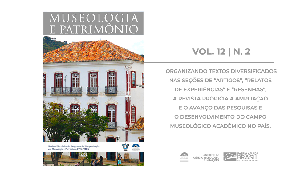 A Revista Museologia e Patrimônio contribui para o aprofundamento, legitimação, valorização e divulgação de pesquisas na área de especialidade, e serve como referência para quem sempre busca os debates mais atualizados da Museologia e Patrimônio. A edição tem Marcus Granato e Diana Farjalla Correia Lima como Editores Científicos.
