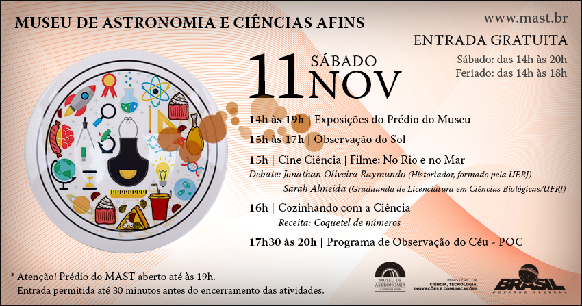 Um ambiente de interação, exploração e conhecimento. É com esse intuito que o Museu de Astronomia e Ciências Afins (MAST) oferece neste sábado, 11 de novembro, uma série de atividades gratuitas voltadas para crianças, jovens e adultos. É uma oportunidade para o público se divertir e aprender com experiências que vão desde exposição tridimensional, até a realização de oficinas de astronomia e observação do céu através de telescópios.