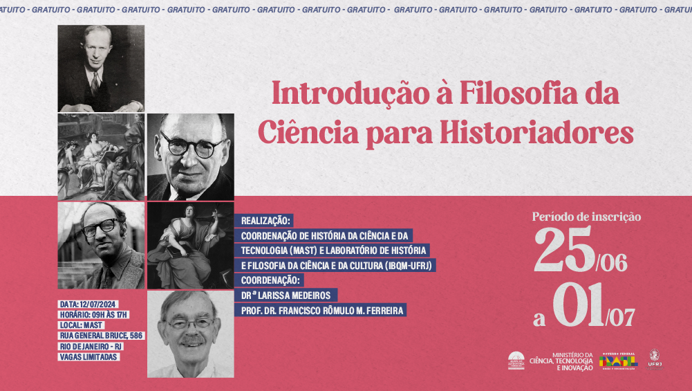 O curso “Introdução à Filosofia da Ciência para historiadores”, uma iniciativa Coordenação de História da Ciência e da Tecnologia (MAST) em parceria com o Laboratório de História e Filosofia da Ciência e da Cultura (IBqM-UFRJ).