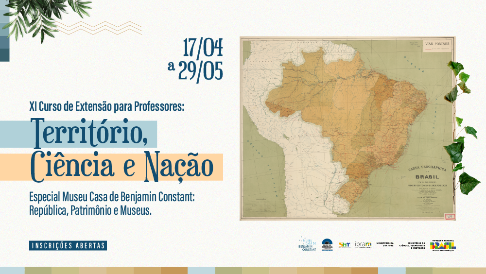 Vem aí o XI Curso de Extensão para professores: Território, Ciência e Nação elaborado pelo MAST em parceria com o Museu Casa de Benjamin Constant. O curso é voltado para os professores da rede pública e privada, do Ensino Fundamental ao Médio.