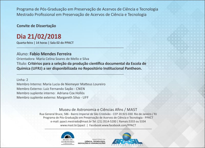 Programa de Pós-Graduação em Preservação de Acervos de Ciência e Tecnologia – PPACT