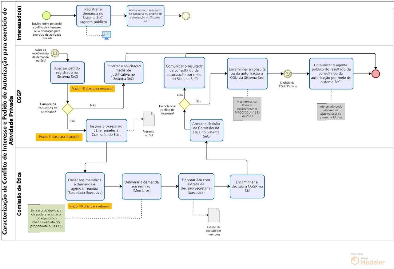 Fluxograma do processo de conflito de interesses e autorização para atividade privada: