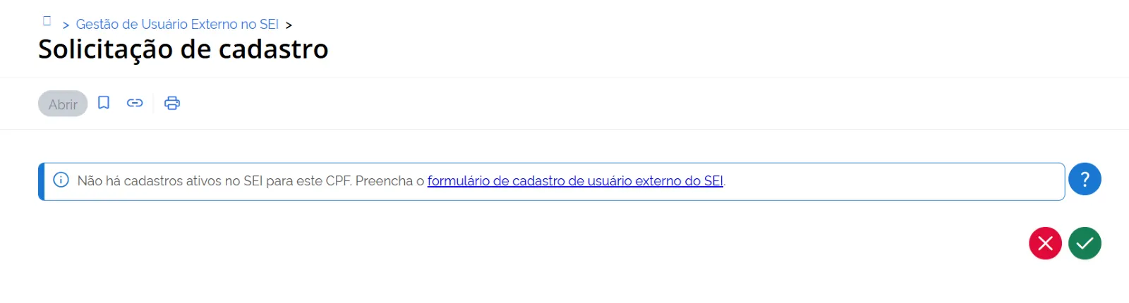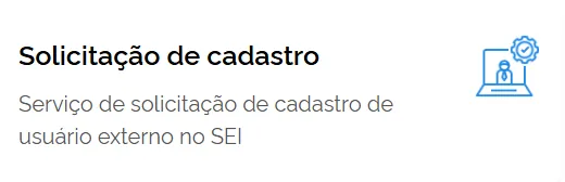 Ou, se preferir, retornar ao serviço “Solicitação de Cadastro’’ disponível em Gestão de Usuário Externo no SEI para assinar e enviar o Termo.