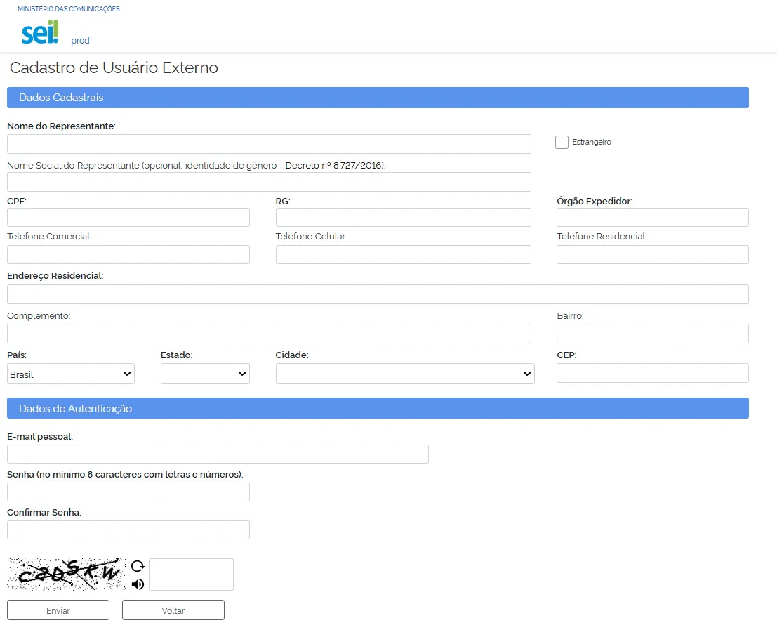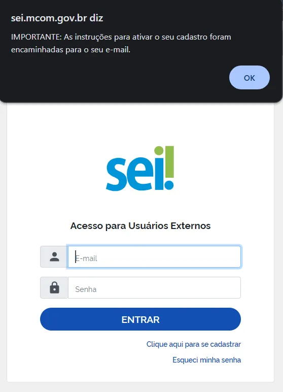 Manual de Cadastro de Usuário Externo - SEI/MCom