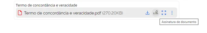 2.4. Revisar os dados do Termo de Concordância e Veracidade, clicar em 'Assinatura de Documento' e, em seguida, selecionar 'Prosseguir'.