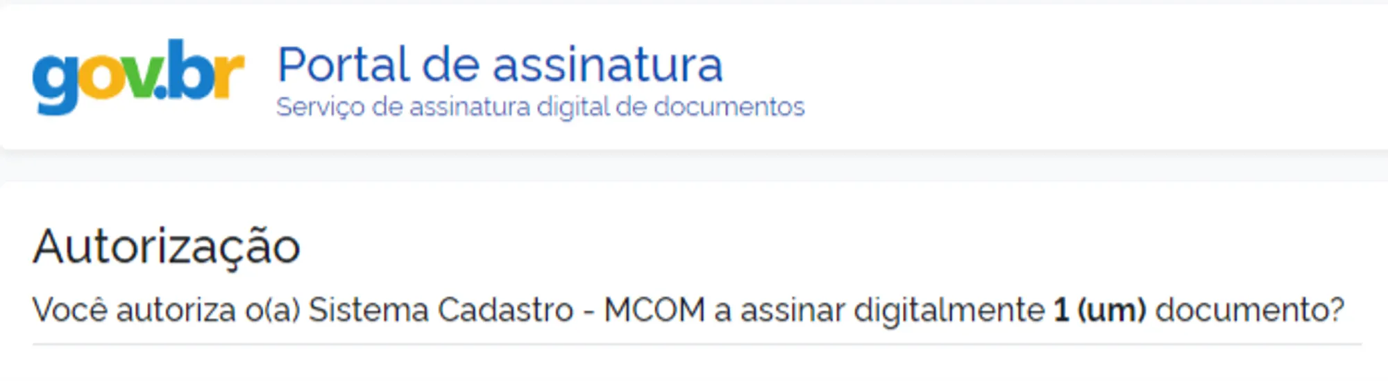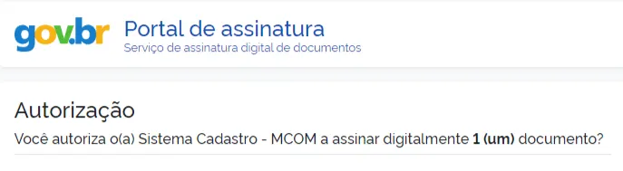1.7. No Portal de assinatura, inserir o código que será enviado para sua conta de acesso único do GOV.BR ou via SMS e, por fim, autorizar a ação.
