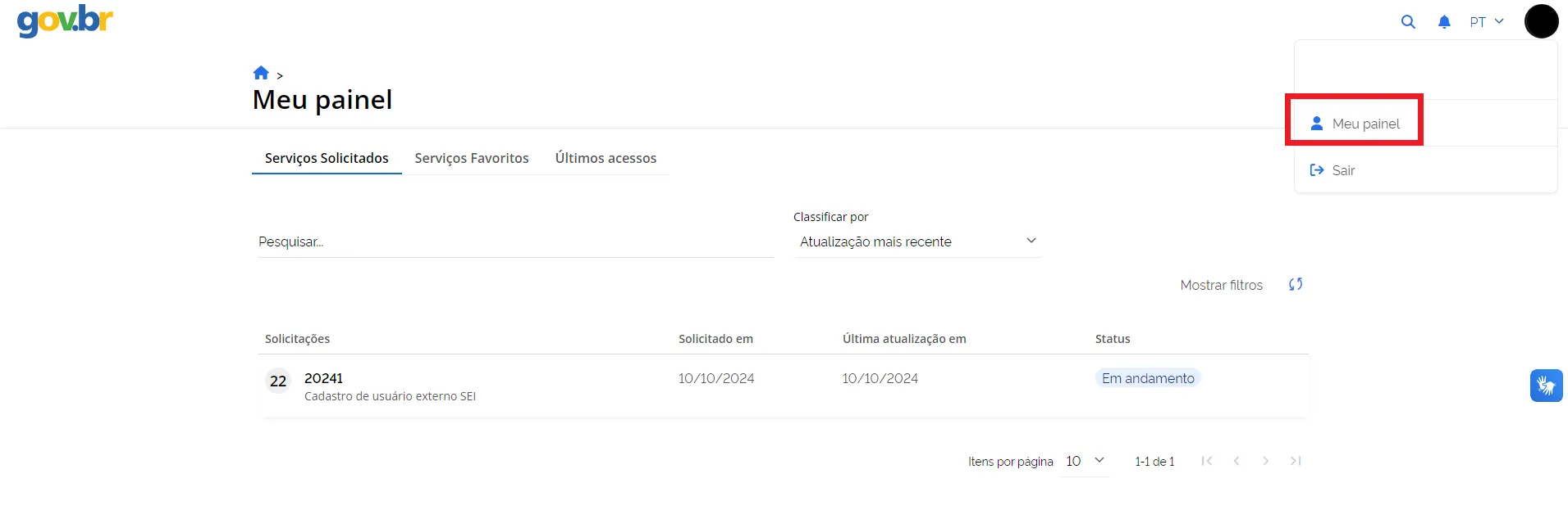 4.2. Ao clicar em “Meu painel”, disponível no serviço Gestão de Usuário Externo no SEI, suas solicitações poderão ser consultadas a qualquer momento.